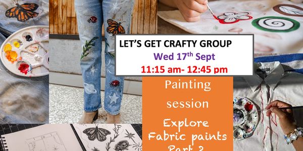 We will continue our exploration of fabric painting. During this session, you will learn how to transfer designs and add finer details onto fabric. It's not too late to join us; you can make a small project or bring an item of your choosing, a plain fabric tote bag, a T-shirt, a pair of jeans or an old cushion that needs some jazzing up. Please remember it is best to wash and iron these items before painting. bring a tote bag,piece of clothing..something to paint