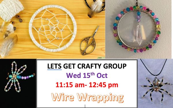 Just before Halloween! - The group will learn the essentials of wire wrapping and adding beads to create a bedazzled spider, dragonfly or a round suncatcher. No need to book