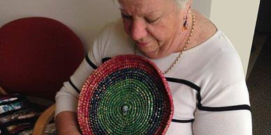 I use a variety of basketry techniques including coiling, twining, cobbling and random weaving.